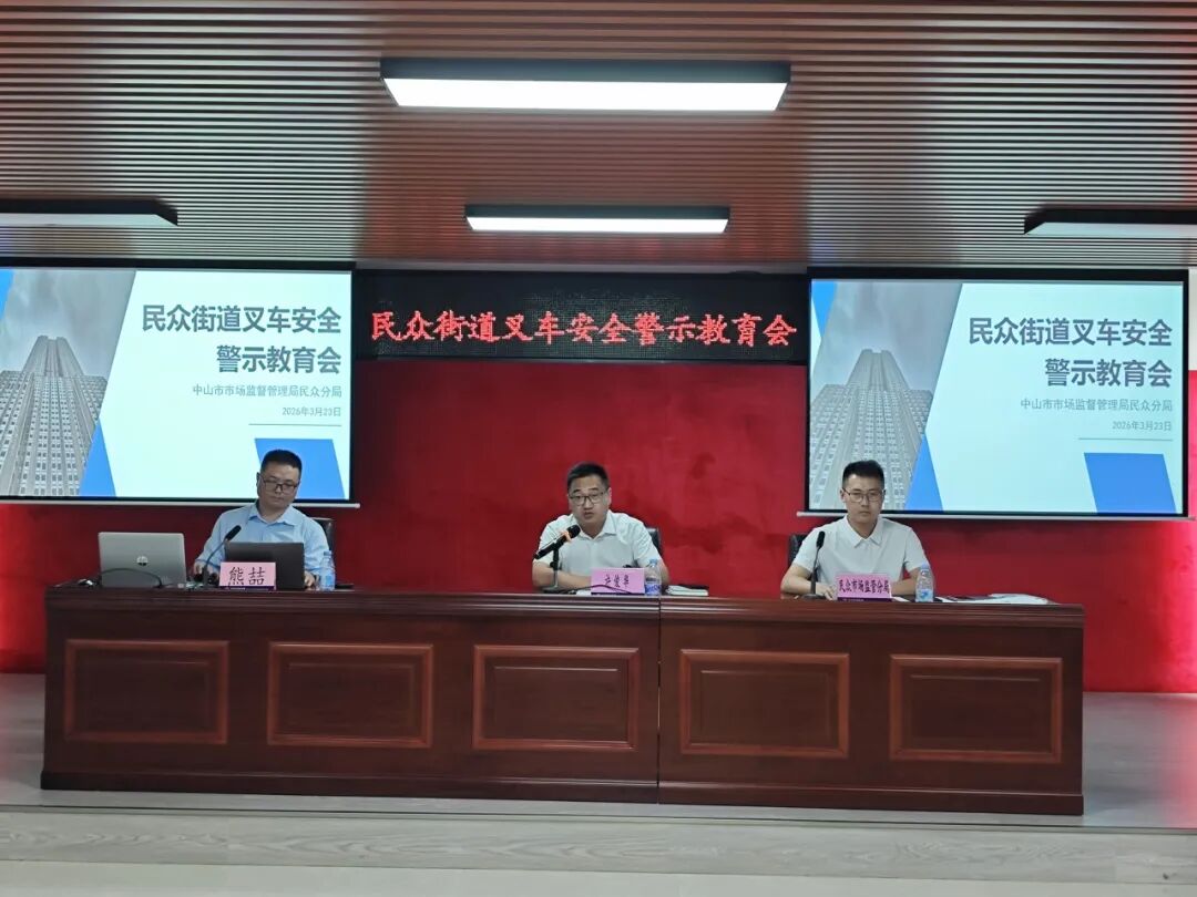 为压实叉车使用单位安全主体责任,普及叉车安全管理及使用知识,3月23日下午,市市场监督管理局民众分局牵头召开民众街道叉车安全警示教育会。民众街道党工委委员、办事处副主任许俊华出席会议,民众公安分局(交警大队)、民众街道应急管理局、综合行政执法局、辖区内18个村(社区)负责安全生产的工作人员,以及来自区及街道的100余家叉车使用单位、再生资源企业的安全生产负责人参加会议。